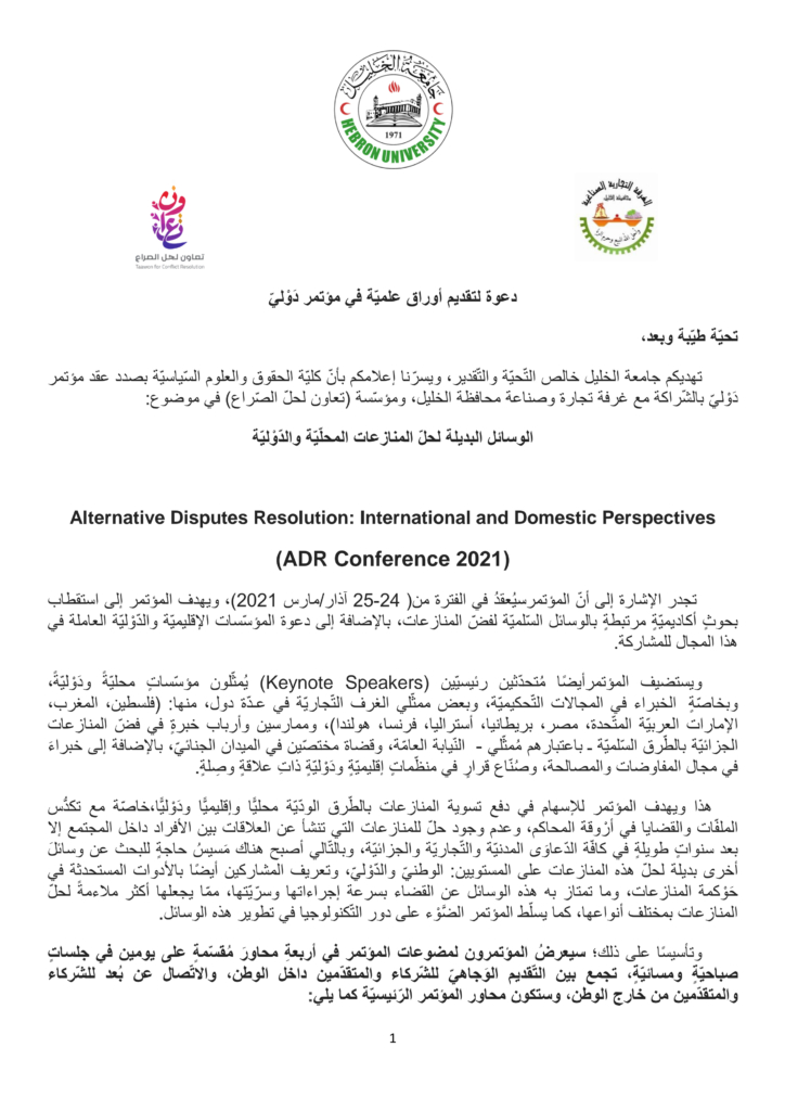 دعوة للمشاركة في “مؤتمر دولي” يناقش موضوع: “الوسائل البديلة في تسوية المنازعات” في ديسمبر 27, 2020 الدعوة: شارك FacebookTwitterGoogle+ReddItWhatsAppPinterestالبريد الإلكتروني