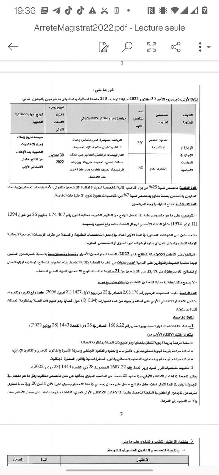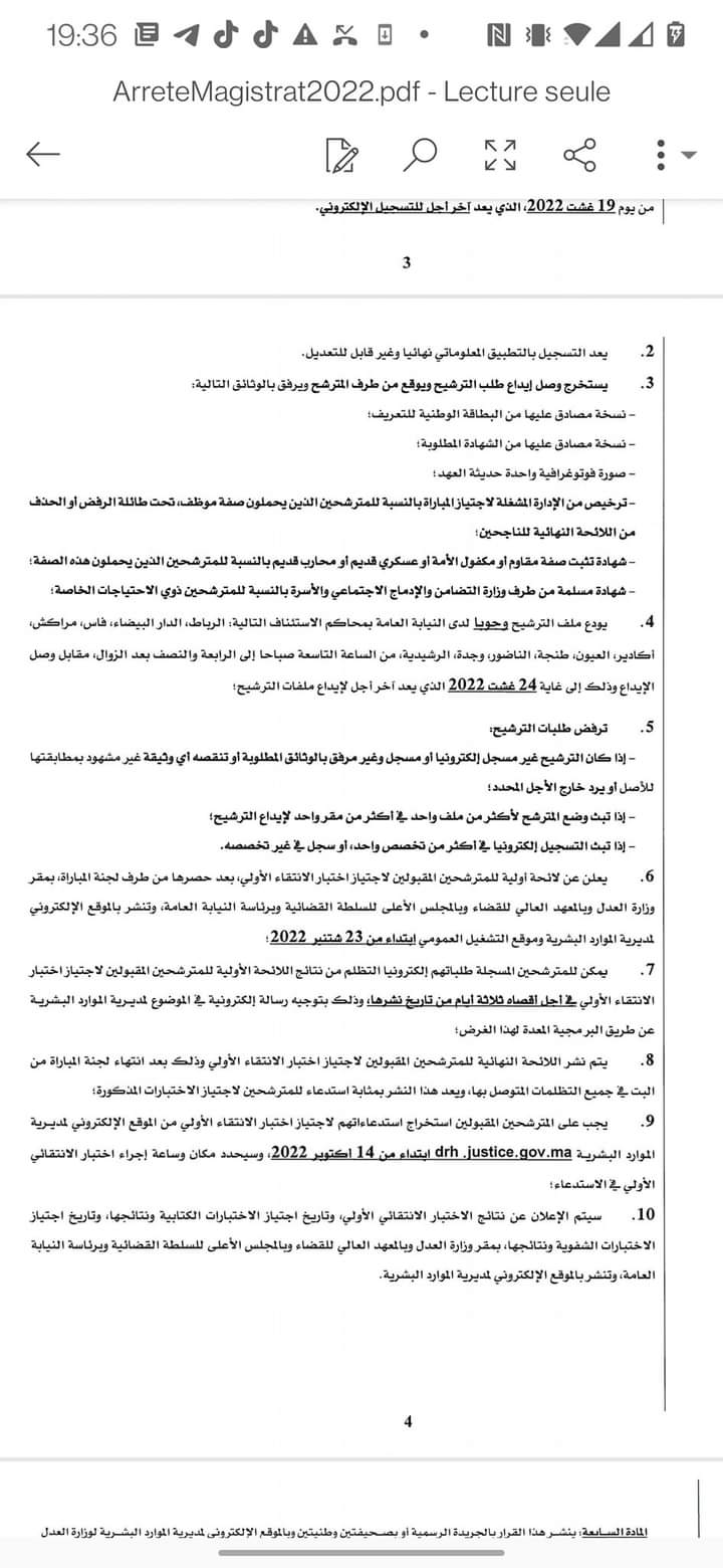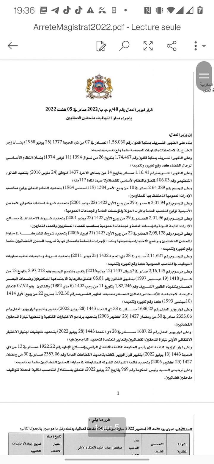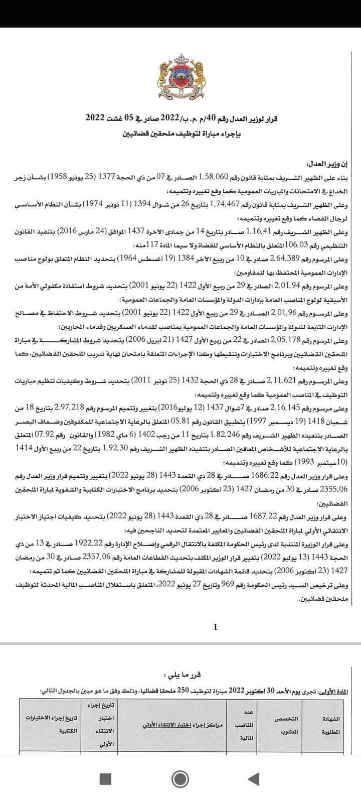 إعلان عن تنظيم مباراة توظيف 250 ملحق قضائي آخر تحديث أغسطس 5, 2022 أعلنت وزارة العدل عن تنظم مباراة لتوظيف 250 ملحق قضائي، وحيث يجرى اختبار الإنتقائةء الأولي يوم 30 أكتوبر 2022 ، طبقا لقرار وزير العدل رقم 22/40 م م ب الصادر في 05 غشت 2022 شارك FacebookTwitterGoogle+ReddItWhatsAppPinterestالبريد الإلكتروني